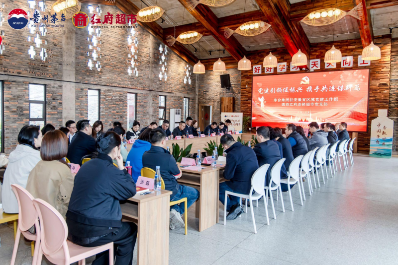 為深入學習貫徹習近平新時代中國特色社會主義思想,學習黨的二十大及二十屆三中全會精神,以黨建引領發(fā)展,促進黨建與業(yè)務工作融合,3月28日下午,茅臺集團安徽區(qū)域黨建小組聯(lián)合安徽省徽商紅府連鎖超市黨支部開展“黨建引領促振興 攜手共進謀新篇”黨建共建活動,茅臺集團安徽區(qū)域黨建小組成員,商之都領導班子成員,徽商紅府連鎖超市黨支部支委委員等共38人參加。