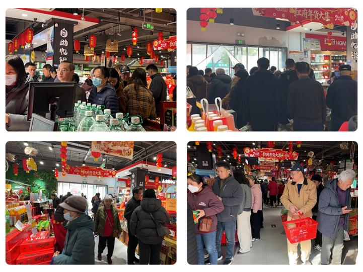 (圖為紅府超市春節(jié)開展“大吉大利 福馬迎春”活動現(xiàn)場)