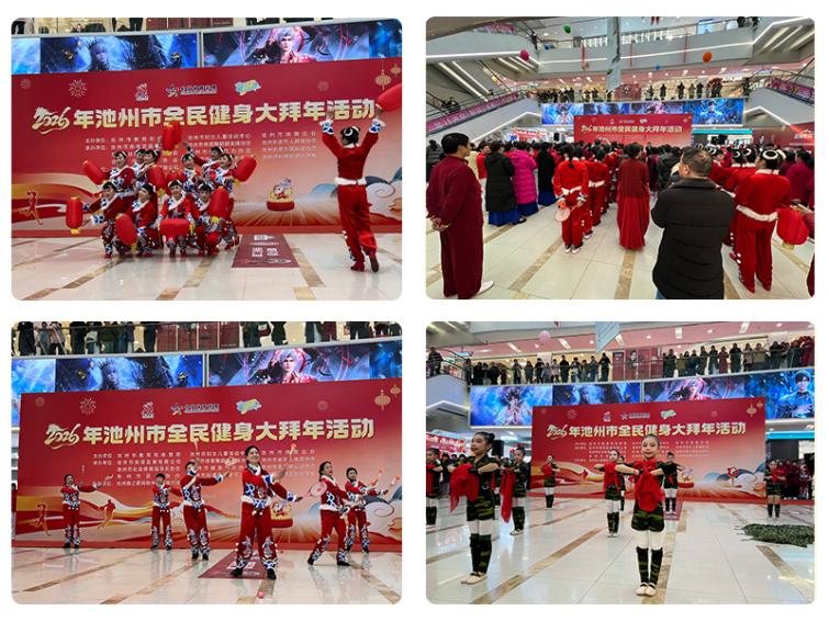 (圖為池州購物中心春節(jié)期間合作開展“全民健身大拜年”活動現(xiàn)場)