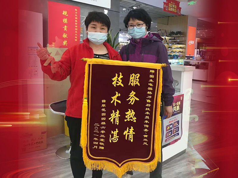 4月20日晚,家住翡翠花園四期翠湖苑的王女士專門給國生電器合肥中心廣場店錦旗,表達對國生電器格力售后師傅服務(wù)的感謝之情。