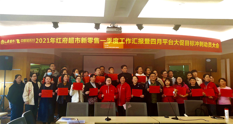 為總結(jié)一季度紅府線上工作,提高運(yùn)營質(zhì)量,紅府線上一季度復(fù)盤暨四月平臺(tái)大促動(dòng)員會(huì)于4月 9日在總部五樓會(huì)議室召開。紅府超市副總經(jīng)理、線上項(xiàng)目負(fù)責(zé)人曹勇,代運(yùn)營方線上負(fù)責(zé)人,京東到家合肥站負(fù)責(zé)人,所有門店店長或線上負(fù)責(zé)人參會(huì)。