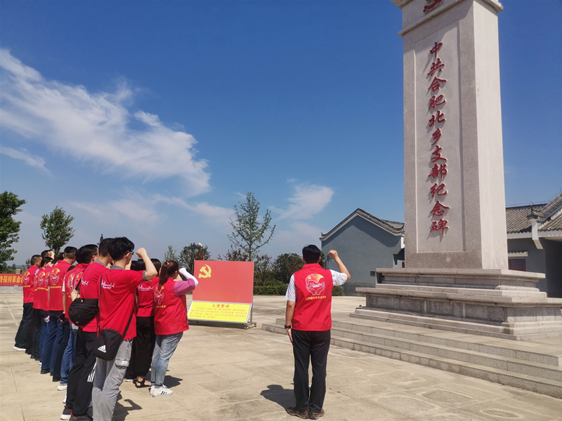 黨員們首先參觀了北鄉(xiāng)支部紀(jì)念館,講解員通過深動的介紹向我們展示了合肥地區(qū)第一個中共黨組織創(chuàng)建始末、解放前合肥地區(qū)黨史與革命抗?fàn)幍臍v史。參觀后由支部書記王正領(lǐng)誓,全體黨員在北鄉(xiāng)支部紀(jì)念碑前重溫入黨誓詞。