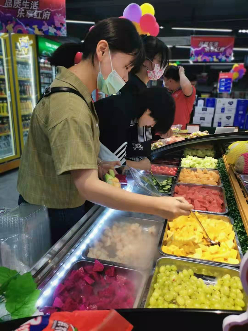 孩子是祖國的未來和希望,紅府超市作為國有企業(yè),除了做好疫情防控各項(xiàng)措施的落實(shí)、嚴(yán)控食品安全以外,還將不斷引入新品,配置營養(yǎng)健康的食品并作為一個(gè)課題來研究。暑假期間,紅府超市采購部門積極行動(dòng),洽談引入“四低”、“兩健康”食品(“四低”指低鹽、低糖、低脂、低鈉的食品和飲料,“兩健康”是指有助于身體健康的營養(yǎng)食品,如富含蛋白質(zhì)、維生素和膳食纖維的食品,有助于心理健康的食品,如舒緩情緒、提神醒腦的食品等)和9.9元“水果撈”等新商品,引導(dǎo)孩子合理膳食、健康生活。各校開學(xué)當(dāng)天“營養(yǎng)”、“健康”、“科學(xué)搭配”成了熱議的話題,“鮮切水果配酸奶”的專柜前更是排起了長隊(duì)。