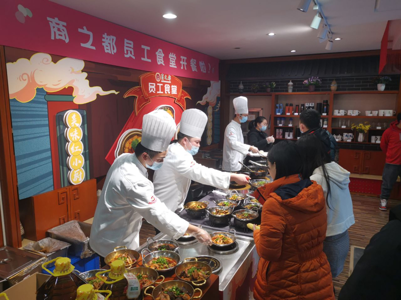 為解決辦公樓職工中午就餐問(wèn)題,商之都一直積極籌劃開(kāi)辦職工食堂,并將其列入2021年“我為群眾辦實(shí)事”清單。經(jīng)過(guò)多方調(diào)研、策劃,商之都紅府超市最終與安徽格瑞餐飲有限公司達(dá)成合作協(xié)議,并經(jīng)過(guò)多次洽談,談定最優(yōu)惠價(jià)格,四菜一湯只要12元,特色小火鍋只要15元,還附贈(zèng)水果。2021年12月29日一開(kāi)業(yè)就受到員工們廣泛好評(píng)和支持,“在職工食堂,吃得舒心、安心、放心!”開(kāi)業(yè)三天,員工食堂日均就餐達(dá)到120人次。