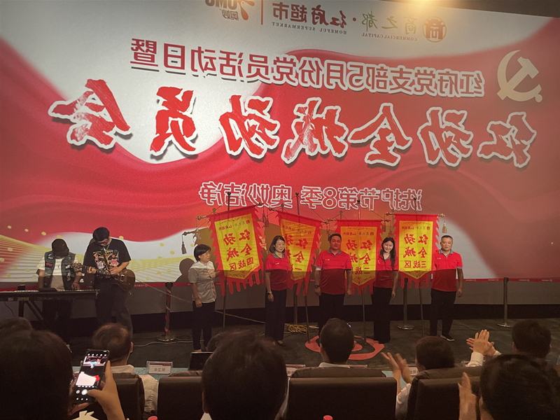 動員會上,紅府超市總經(jīng)理陳航對本次活動方案進行了宣貫,紅府超市董事長任等平為各部門、各門店劃分的四大戰(zhàn)區(qū)司令授戰(zhàn)旗。各戰(zhàn)區(qū)司令指揮戰(zhàn)區(qū)成員在基礎任務下達后現(xiàn)場競拍搶奪更高任務,搶奪每個戰(zhàn)區(qū)的沖刺先鋒獎,表達了目標必達、使命必達的信心與決心。今年的動員會還增添了燃爆全場的樂隊演唱和精彩的舞蹈表演,使得動員會氣氛更加活躍。