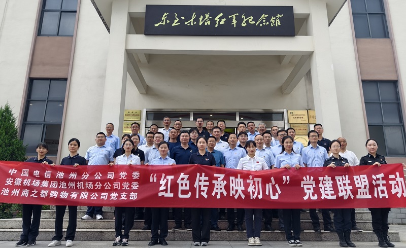 6月14日,池州購(gòu)物中心黨支部與安徽機(jī)場(chǎng)集團(tuán)池州機(jī)場(chǎng)分公司黨委、中國(guó)電信池州分公司黨委聯(lián)合開(kāi)展“紅色傳承映初心”黨建共建紅色教育活動(dòng),赴東至參觀木塔紅軍紀(jì)念館、數(shù)字鄉(xiāng)村大屏、大田村史館,接受紅色傳統(tǒng)教育。