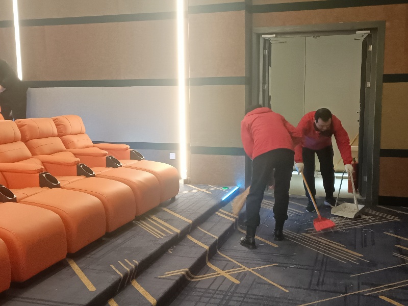 新影城通過一個(gè)月的共同努力順利完成前十多項(xiàng)招投標(biāo)活動(dòng),經(jīng)過一系列裝飾,設(shè)備采購、調(diào)試、消防的驗(yàn)收及各種證件的辦理,終于圓滿完工。大家看到屬于自己新的影城,信心倍增,干勁十足,有條不紊分工合作,一起拖地、擦玻璃、抹桌椅,打掃近兩個(gè)小時(shí),就將影城環(huán)境衛(wèi)生打掃干干凈凈、亮麗一新,給觀眾一個(gè)全新的體驗(yàn),為迎接春節(jié)期間影院“開門紅”做好滿心的服務(wù)!