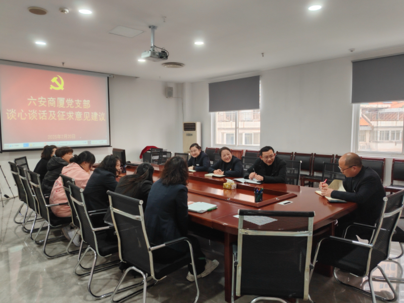 為深入學習貫徹黨的二十大及黨的二十屆二中、三中精神,進一步提升黨支部的凝聚力和戰(zhàn)斗力,保障2024年度組織生活會的順利召開,2月20日至24日六安商廈黨支部組織開展了談心談話和意見建議征求活動。