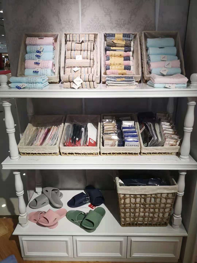 為擴大自有品牌“優(yōu)逸空間”的經(jīng)營品類,商管公司品牌管理部與紅府超市自采部對接,雙方就合作品牌、經(jīng)營模式、協(xié)議條款等進(jìn)行了洽談,并多次到紅府宿州路店現(xiàn)場進(jìn)行比較、選品,確定引進(jìn)紅府超市自采“紅之品”、“金號”等品牌的拖鞋、毛巾等家居類商品到“優(yōu)逸空間”專柜銷售。為了節(jié)約經(jīng)營成本,品牌管理部從網(wǎng)上挑選了美觀實用的陳列道具,經(jīng)過精心設(shè)計,已于近日在中心廣場、六安和霍邱三個門店“優(yōu)逸空間”專柜上柜銷售。