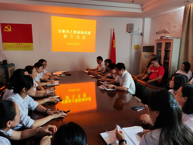 630日,巢湖商廈召開2022年第一次全體職工大會,工會副主席江榮華主持會議。