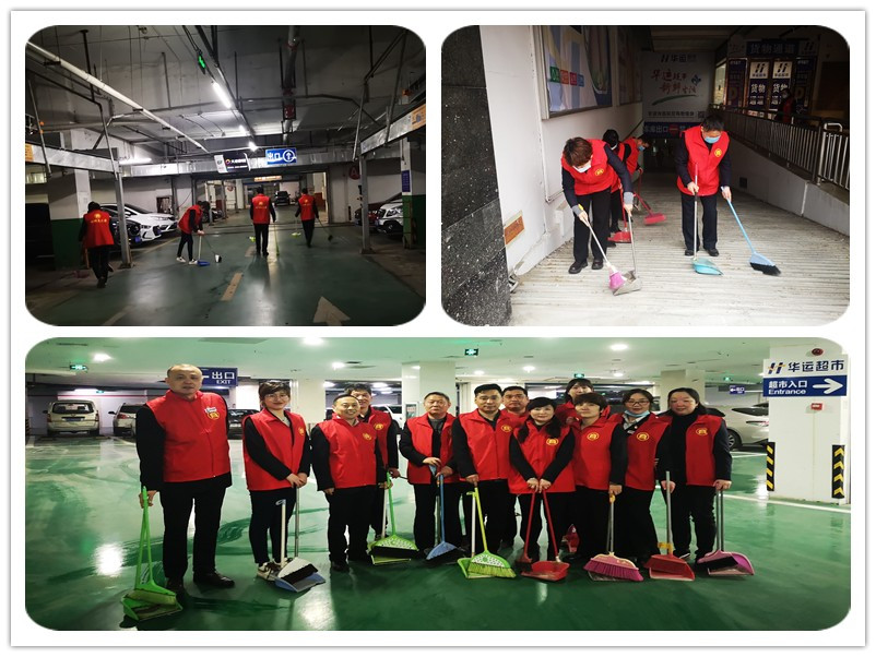 活動(dòng)開始,參加人員分為兩組對(duì)購(gòu)物中心外圍廣場(chǎng)及負(fù)一、二層停車場(chǎng)進(jìn)行衛(wèi)生清潔及美化工作。大家分工協(xié)作,手拿掃把等衛(wèi)生潔具,做好商場(chǎng)內(nèi)外環(huán)境衛(wèi)生清掃及車輛有序停放引導(dǎo)等工作。
