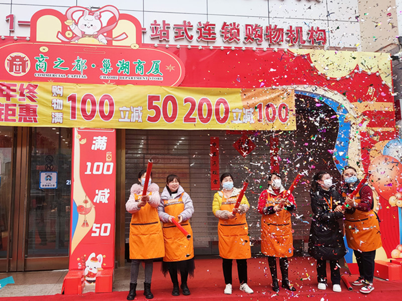 時(shí)間:2023年1月22日 地點(diǎn):安徽商之都巢湖商廈南門(mén)口 事件:正月初一,商之都巢湖商廈商戶員工們齊齊扭響手中的禮花筒。癸卯年頭一天的生意就在這紅紅火火、熱熱鬧鬧的氛圍中拉開(kāi)了序幕。 (文/圖 李海梅)