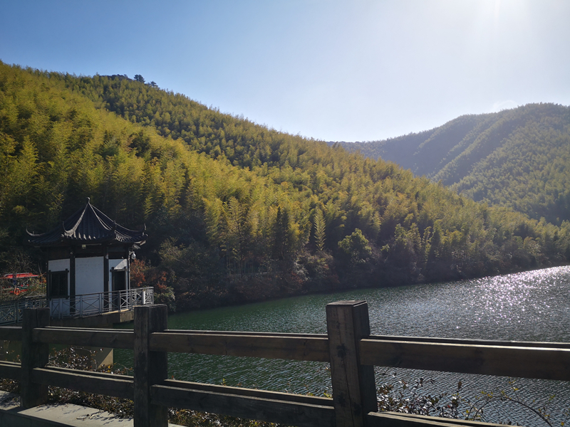 拍攝內(nèi)容:這里山水相映,風(fēng)景如詩如畫。湖水碧綠碧綠的,仿佛是一顆美麗的綠珍珠點綴在竹海邊,連綿起伏的山巒上長著大片大片綠油油的竹子,仿佛一幅有聲有色的水墨山水畫。