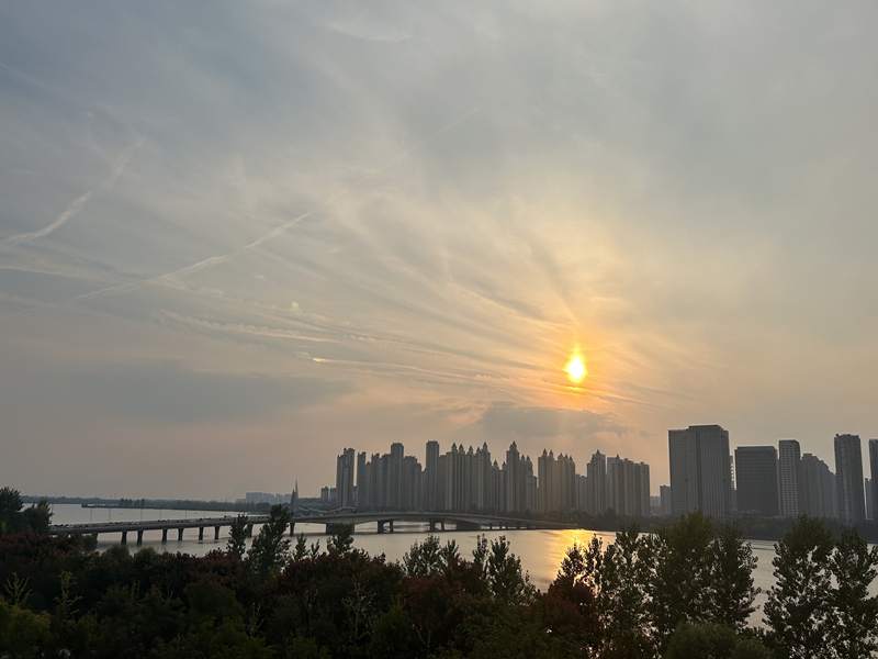 拍攝地點(diǎn):龍湖公園 拍攝時(shí)間:10月11日傍晚 拍攝內(nèi)容:站在龍湖東公園高處,西邊風(fēng)景盡收眼底,落日余暉、高樓聳立映入平靜的湖水,龍湖大橋上車水馬龍連接龍湖東西岸的繁華,近處綠色成蔭,若不是秋風(fēng)吹拂涼意襲來(lái),已然忘記已入深秋。 (文/圖 張為為)