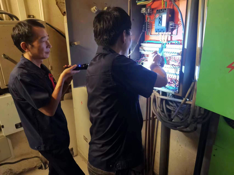 物業(yè)工程部維修工宋德耀在班長王正紀的帶領(lǐng)下對A座二樓1號電管井內(nèi)照明配電柜進行檢查,確保商場照明供電運行正常,為國慶期間商場正常經(jīng)營保駕護航。