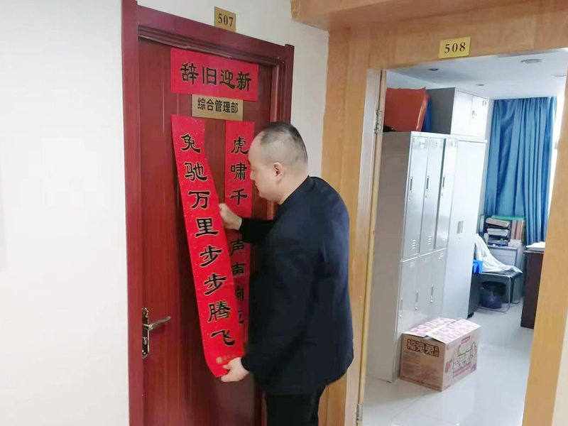 春節(jié)我在崗,歡喜迎新年。大年三十,綜合管理部王建軍正在為辦公室貼春聯(lián)。