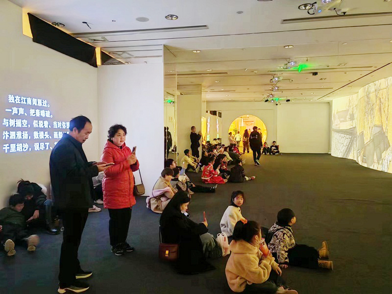 現(xiàn)場宋朝瓷器、詩詞字畫、千里江山圖等眾多展品展覽,投壺游戲和拍照打卡點(diǎn)互動(dòng)參與,更可以換上漢服沉浸式感受,親眼目睹栩栩如生游動(dòng)的《清明上河圖》,可觸可感,真正體驗(yàn)一場穿越宋朝的時(shí)空之旅!開館期間吸引眾多兒童和年輕客群進(jìn)館觀看。觀眾在現(xiàn)場不僅可以 領(lǐng)略文化底蘊(yùn),體驗(yàn)科技魅力,更是一次對中華文化的學(xué)習(xí)與傳承。