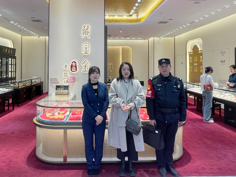 老鳳祥專柜店長周穎也加入找尋隊伍,在黃金加工附近的通道邊上,發(fā)現(xiàn)了顧客遺失的金項鏈,周穎立即聯(lián)系門店值班管理人員,同時迅速聯(lián)系了顧客和警察。