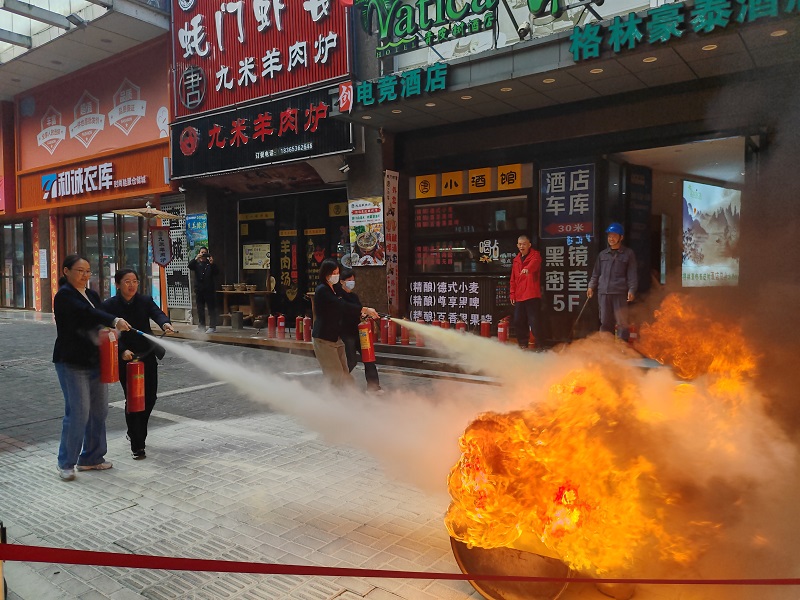 8:00時(shí),消防監(jiān)控室模擬火情,啟動商廈消防應(yīng)急廣播,商場內(nèi)警鈴四起,各樓層員工及租賃單位人員在疏散引導(dǎo)員的引導(dǎo)下,緊張有序地安全到達(dá)室外指定位置。商廈安全管理人員先對消防知識進(jìn)行了培訓(xùn),重點(diǎn)介紹了滅火器的使用方法和要點(diǎn),隨后開展了滅火實(shí)戰(zhàn)演練,參演員工結(jié)合日常培訓(xùn)所學(xué)的安全知識沉著、冷靜、快速地?fù)錅缌舜蠡稹?/span>