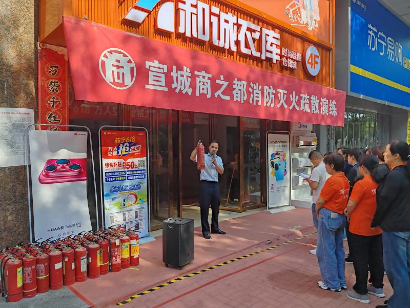 宣城商廈在第24個(gè)安全生產(chǎn)月中,圍繞“人人講安全、個(gè)個(gè)會(huì)應(yīng)急——查找身邊安全隱患”主題,于6月17日上午組織百貨及異業(yè)單位的員工開(kāi)展了消防應(yīng)急疏散及滅火實(shí)操演練。