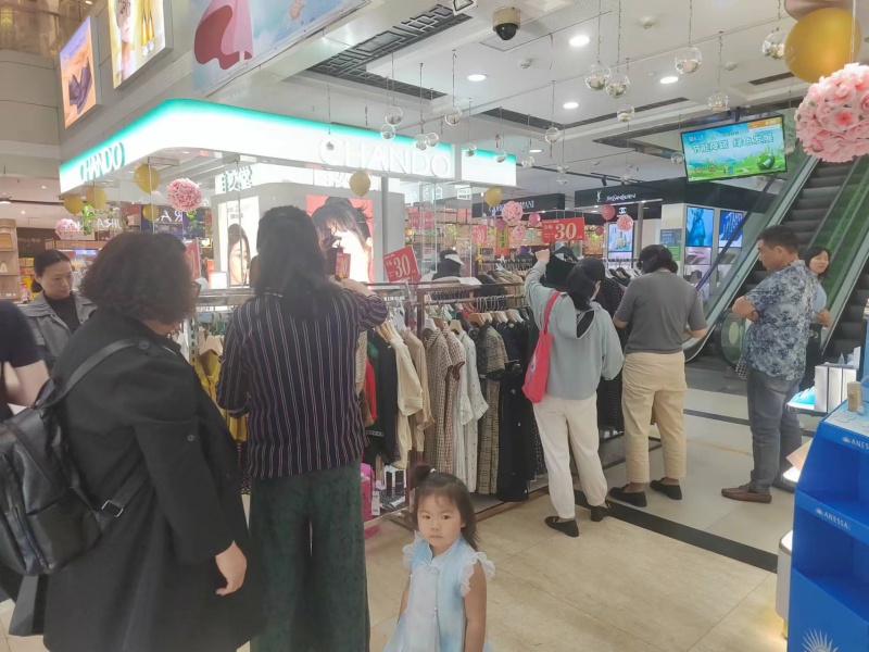 5月上旬,霍邱商廈結(jié)合節(jié)假日熱點(diǎn),聯(lián)合女裝品牌高詩婕、賽締后等開展了以“為愛放價”為主題的品牌專場促銷活動。