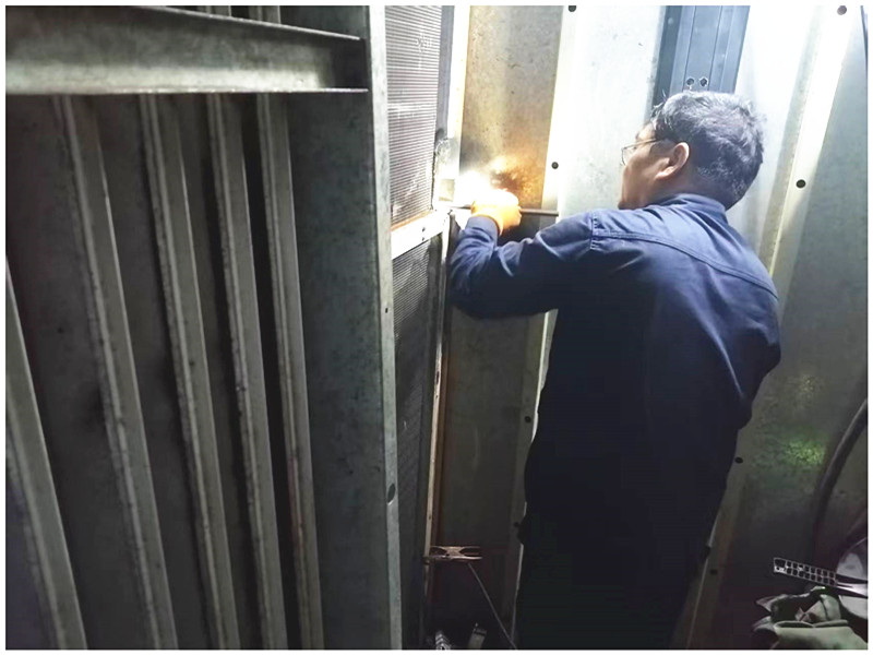 由于冷凝水管道銹蝕滲漏位置較為特殊,縫隙狹窄,給搶修工作帶來難度,后勤人員經(jīng)認(rèn)真研究方案,明確分工,各司其職,拆卸、水排放、焊接、清理施工現(xiàn)場(chǎng),滅火器配置。經(jīng)過3個(gè)多小時(shí)的奮戰(zhàn),終于成功完成了管道滲漏的搶修工作。他們顧不上擦拭額頭汗水,又立即對(duì)修復(fù)后的管道進(jìn)行注水、試壓和檢查,確保無滲漏隱患后,才開啟中央空調(diào)機(jī)組的運(yùn)行。
