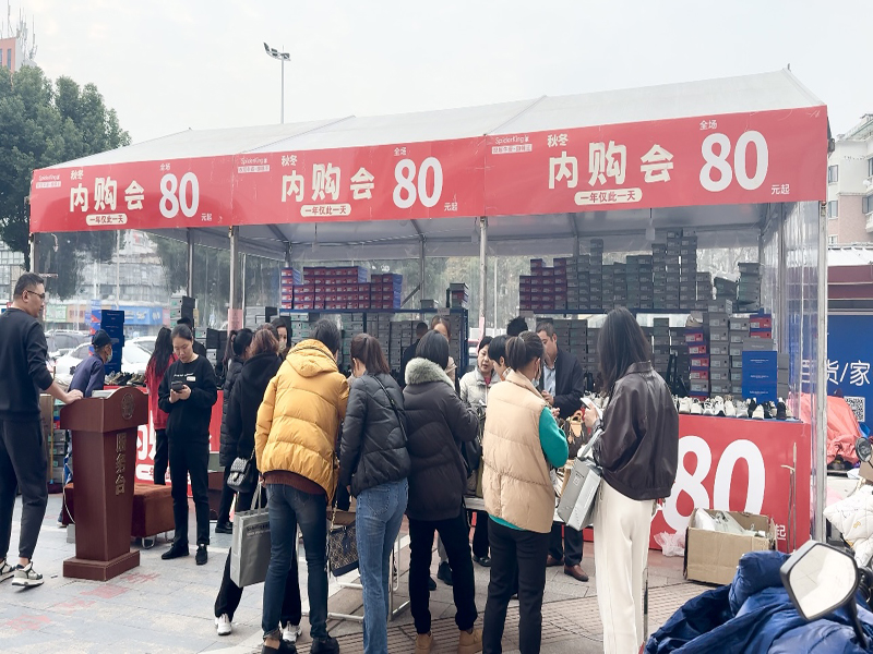 隨著天氣轉涼,六安商廈從 11 月中旬開始,經(jīng)過與當?shù)刂鞴懿块T的溝通申請,在商廈廣場搭建一組三間促銷棚,男女鞋及箱包等豐富貨源齊聚于此,并通過短視頻、朋友圈以及 VIP 顧客群等多渠道宣傳,吸引了大量顧客的關注和購買,實現(xiàn)單日銷售3萬元業(yè)績,充分發(fā)揮了廣場效應。