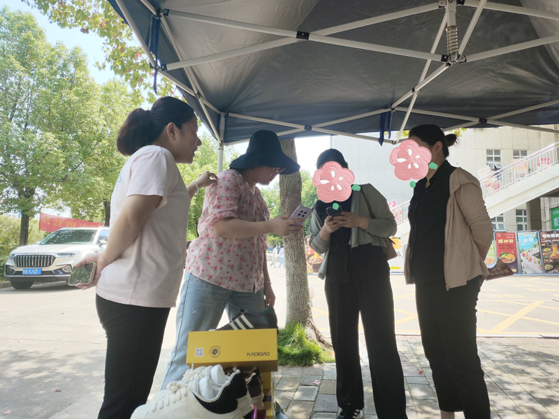 活動現(xiàn)場,六安商之都帶來了款式新穎,價格優(yōu)惠的女鞋,吸引學(xué)生駐足試穿,并成功達成交易。同時,正值“紅動全城-紙品節(jié)”活動期間,其帶來的套裝紙品也深受學(xué)子歡迎。