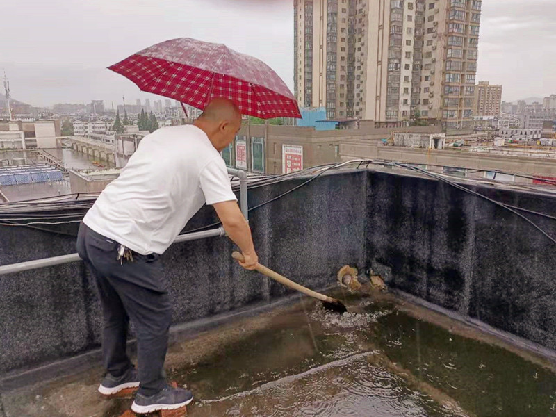 7月8日下午,巢湖商廈后勤人員冒雨檢查、疏通商廈各雨水排水管道及排水口,并提醒一樓各租賃戶暴雨天氣加強(qiáng)安全檢查,做好安全防范,如有異常及時(shí)報(bào)告。(文/圖 周虎)