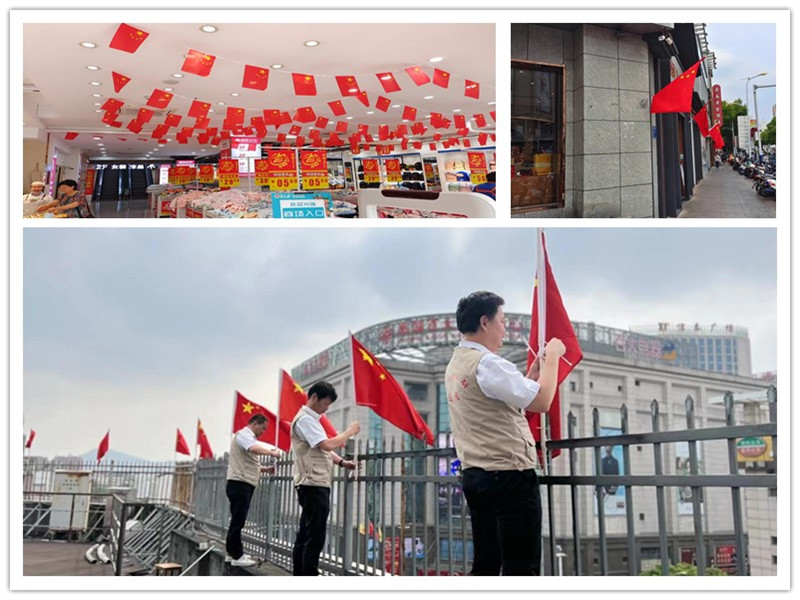 商廈針對(duì)外場(chǎng)沿街商鋪插上鮮艷的五星紅旗,內(nèi)場(chǎng)懸掛小國(guó)旗,增添了濃濃的節(jié)日氛圍,為祖國(guó)華誕獻(xiàn)上深深的祝福。9月27日,在商廈“遠(yuǎn)航”志愿者服務(wù)隊(duì)的帶領(lǐng)下對(duì)商廈外圍布置檢查及加固,預(yù)防重大節(jié)假日的安全隱患,確保節(jié)日期間經(jīng)營(yíng)安全。