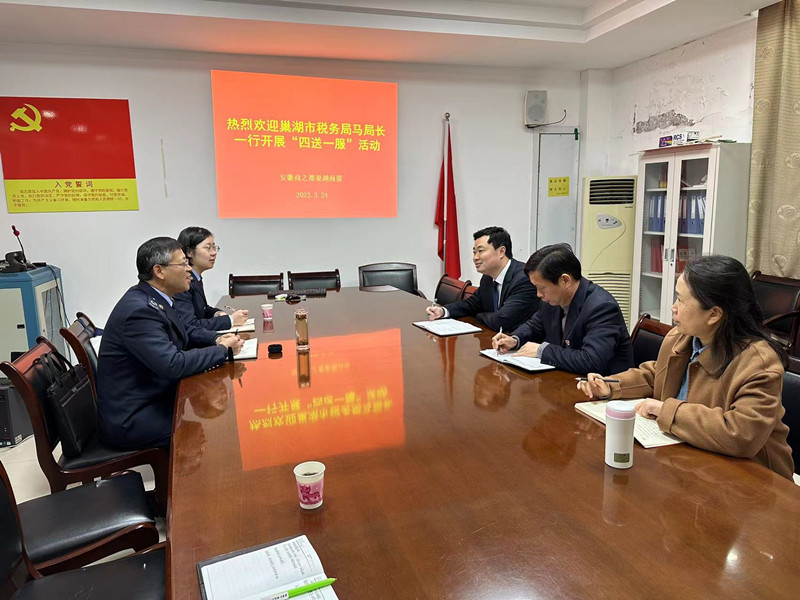 為常態(tài)化推進“四送一服”工作,進一步提升服務(wù)企業(yè)針對性和實效性,3月24日,巢湖市稅務(wù)局馬局長到巢湖商廈深入開展企業(yè)走訪活動,切實幫助企業(yè)解決實際問題,服務(wù)企業(yè)高質(zhì)量發(fā)展。