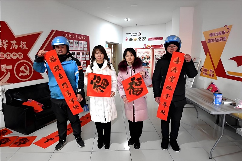 活動現(xiàn)場,書法藝術(shù)家現(xiàn)場揮毫,為新就業(yè)形態(tài)勞動者們書寫春聯(lián)和“?!弊?,用筆墨傳遞溫暖與祝福,一副副春聯(lián)、一幅幅“?!弊?,帶著墨香,暖人心扉,傳遞了池州市總工會對新就業(yè)形態(tài)勞動者的深切關(guān)懷與美好的新年祝愿。