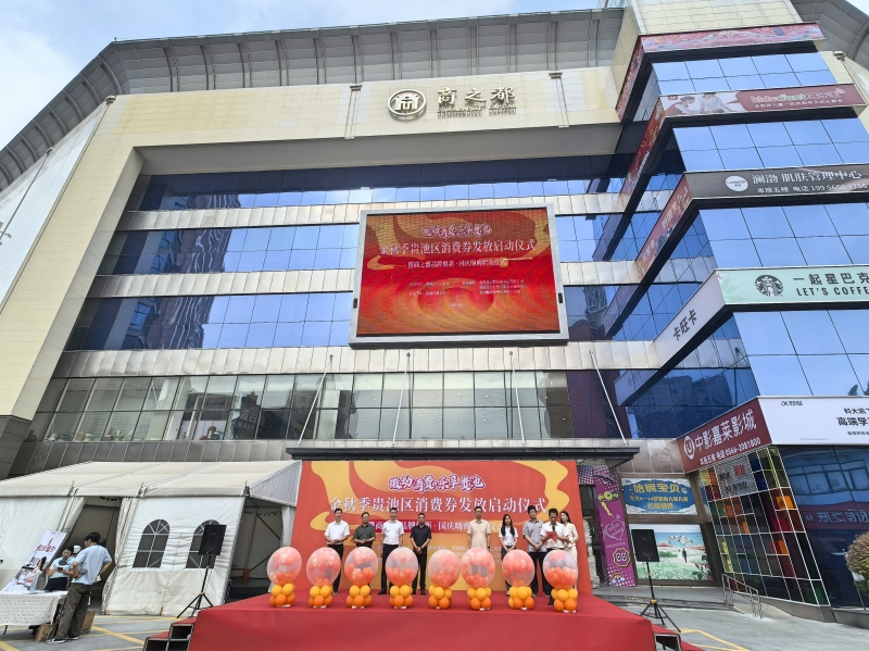 9月23日上午,池州市貴池區(qū)金秋季消費券發(fā)放活動啟動儀式,與池州商之都“品牌煥新?國慶嗨購”主題活動啟動儀式,在池州商之都購物中心同步舉行,雙儀式聯(lián)動發(fā)力,正式拉開中秋、國慶雙節(jié)消費旺季的序幕。