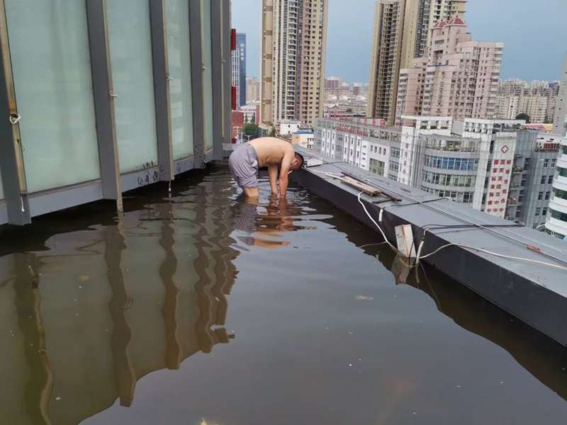 在夏季頻發(fā)的雷電大風(fēng)大雨天氣后,蚌埠購物中心后勤保障部員工張寬大,頂著雨后悶熱潮濕的天氣在屋頂外圍巡邏,發(fā)現(xiàn)六樓影院放映廳的屋頂外圍有大面積嚴(yán)重積水情況,發(fā)生滲水則會(huì)損壞影院的設(shè)施設(shè)備。張寬大立即徒手清理樓頂下水管道垃圾,并且安裝抽水設(shè)備,終于在三小時(shí)后排完積水。