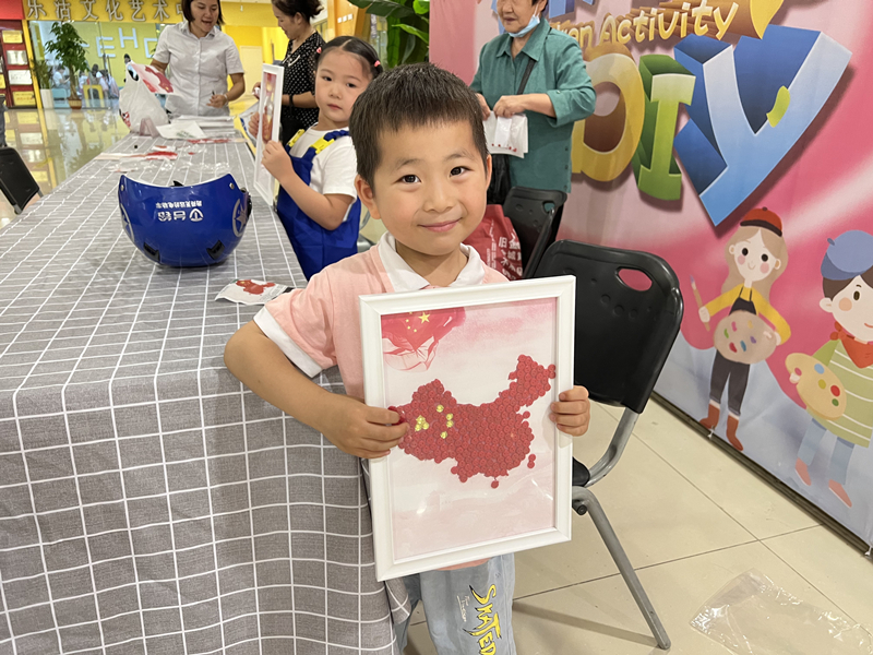 活動(dòng)伊始,主持人先介紹了國(guó)慶節(jié)的由來,并設(shè)置了有獎(jiǎng)問答,現(xiàn)場(chǎng)的小朋友們都積極參與搶答。接著就到了今天的重頭戲——“貼紐扣”環(huán)節(jié),小朋友們?cè)诩议L(zhǎng)的幫助下開始制作精美的祖國(guó)地圖,用一顆一顆的紐扣慢慢描繪出祖國(guó)的宏偉藍(lán)圖。